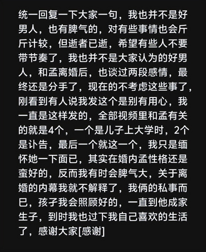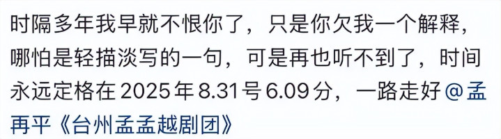在孟再平去世之后,离婚后的平淡生活没有冲淡骆先生的感情,再发文当中,骆先生十分深情,斯人已逝,那些恨也随之消散。