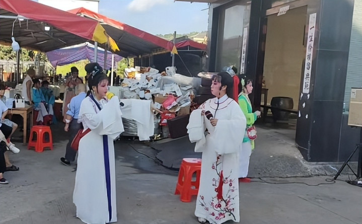 为了纪念这位生前为戏曲奋斗大半辈子的人,在她的葬礼上,还带着“别具一格”的艺术气息,许多越剧迷自发组织在一起,举起手中的乐器,唱着他们最熟悉的越曲小调,用他们的方式来送孟再平老师最后一程。