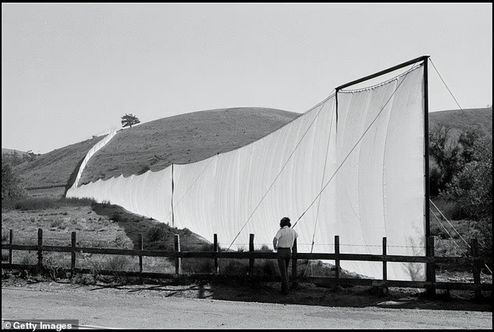 这个长达24.5英里、高18英尺的艺术项目是一个编织栅栏,延伸在101号高速公路附近。