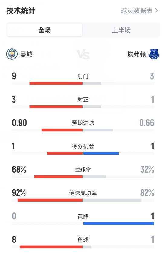 直播吧10月18日讯2025-26赛季英超联赛第8轮,曼城主场迎战埃弗顿,上半场两队暂0-0战平。