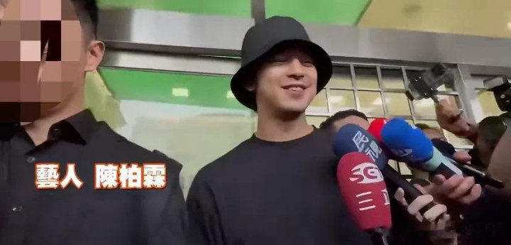 陈柏霖戴着黑色帽子,穿着黑色上衣,本来戴着口罩的他,面对镜头摘下了口罩,然后全程微笑,完全看不出紧张的样子,反而很淡然。
